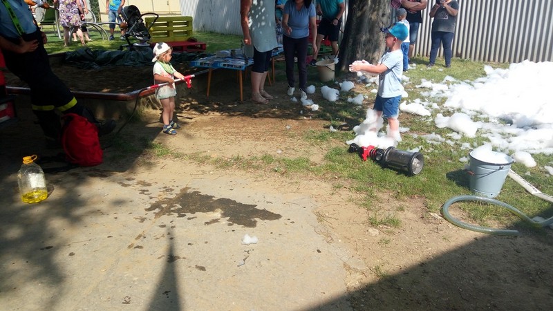 Deň detí sme oslávili 7. júna 2019 športovo-súťažným dopoludním a poobedňajšou opekačkou spolu s rodičmi a dobrovoľnými hasičmi, ktorí nám pripravili penovú zábavu.