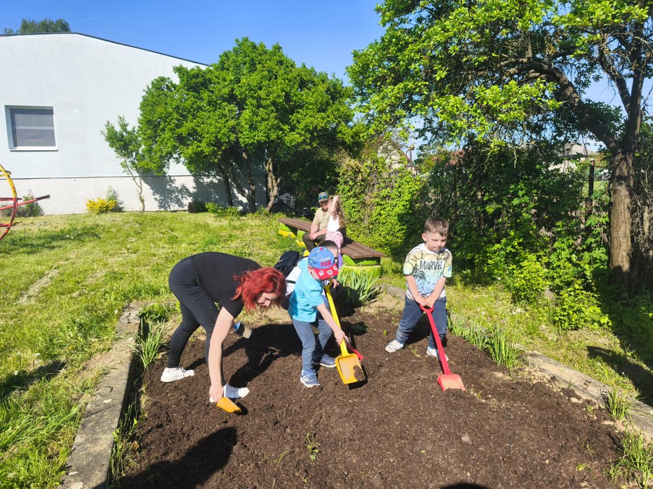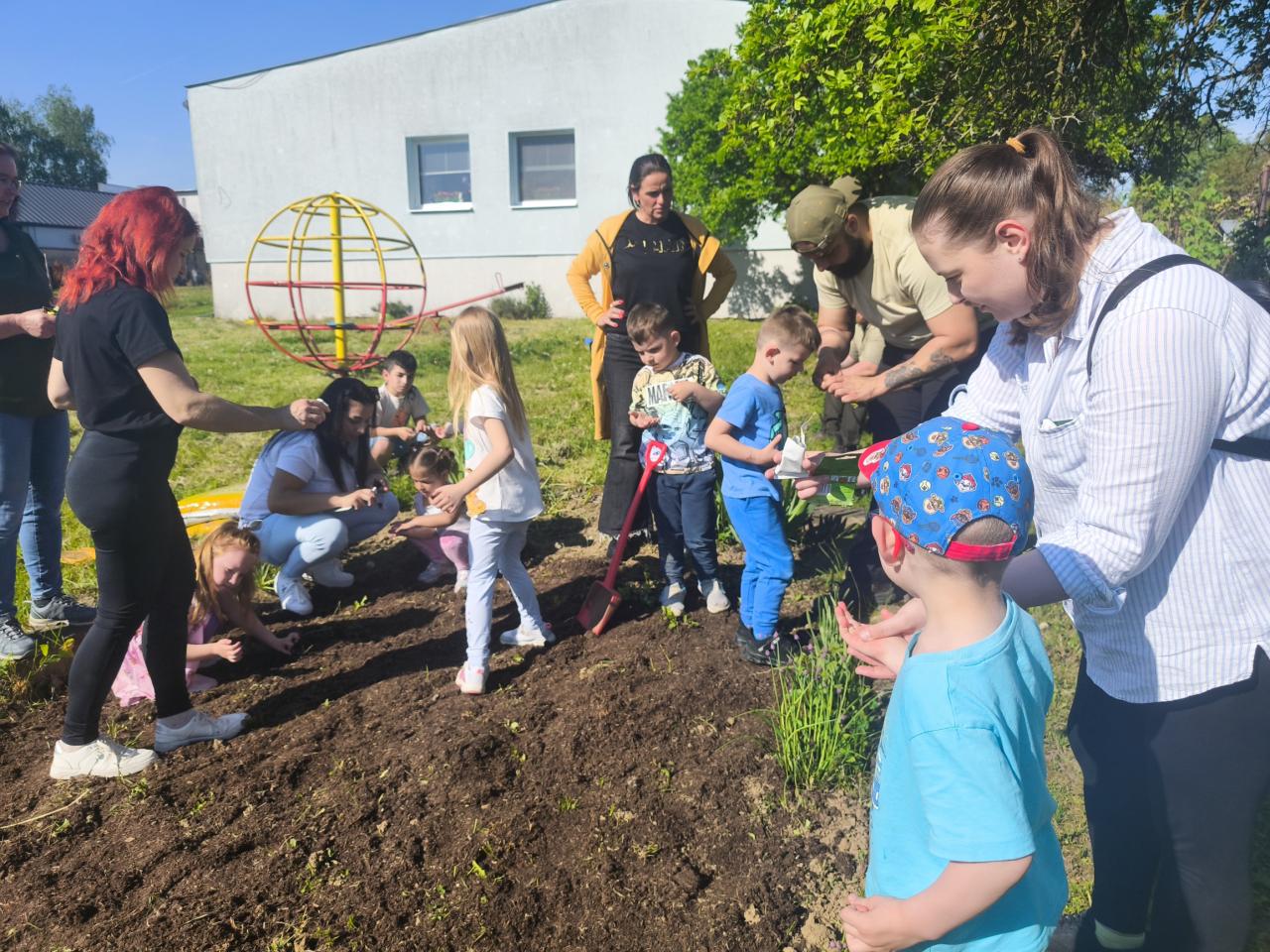 Druhý máj patril Meduške a jej objavovaniu jarnej prírody. Deti na školskom dvore plnili zadané úlohy – poznávali jarné kvety, mláďatá domácich zvierat, hrali kvetinové pexeso, slabikovali názvy jarných kvetov, skladali puzzle. Po súťaži sme sa presunuli do školskej záhrady, kde sme vytvorili záhon lúčnych kvetov – rýľovali sme pôdu, dosypali novú zeminu, posiali semienka rôznych kvetov a nakoniec všetko poliali vodou. Záhon bude slúžiť hmyzu a drobným živočíchom na občerstvenie a úkryt a našim deťom na pozorovanie.