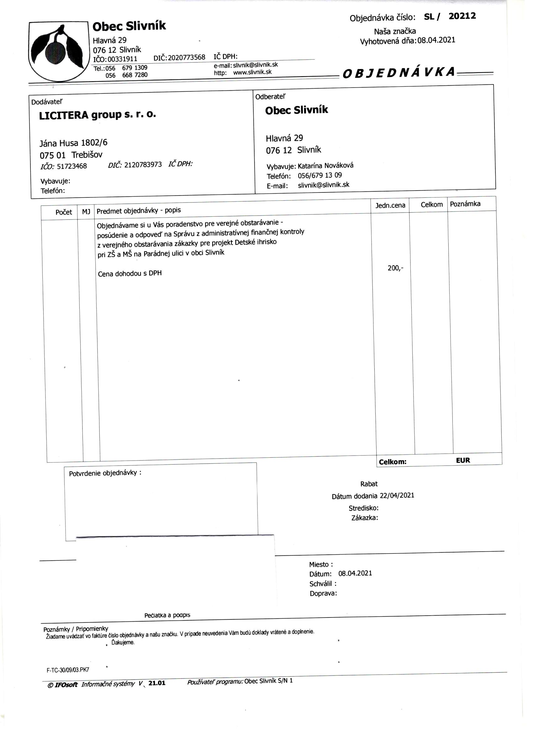 objednávka SL/20212 LICITERA