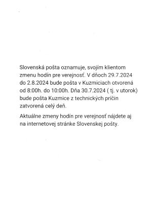 Zmena otváracích hodín od 29.7.2024 do 2.8.2024.